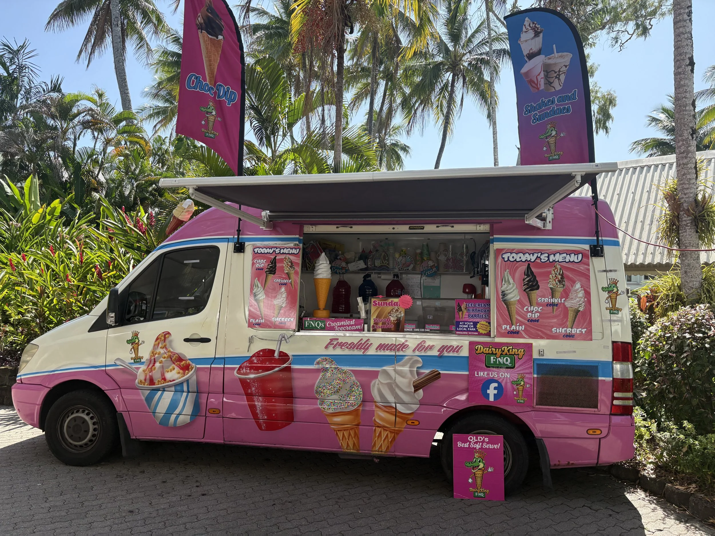 Dairy King FNQ is your premium soft serve ice cream van, available for a wide range of events, including school fetes, festivals, corporate events, sporting events, weddings, birthday parties, product launches, school visits, workplace visits, and sunset park visits.